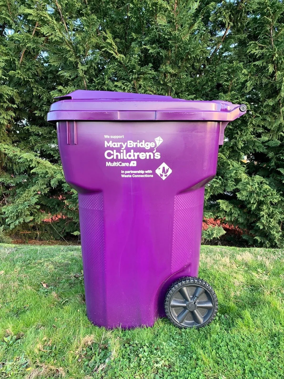 It's simple: As a Pierce County Refuse customer, you can donate $100 to Mary Bridge Children's Hospital, and our team will replace your existing recycle cart with a purple cart. We will continue to service your recycling in your purple cart. At the same time, you show your support for Mary Bridge Children's Hospital. What could be better?
